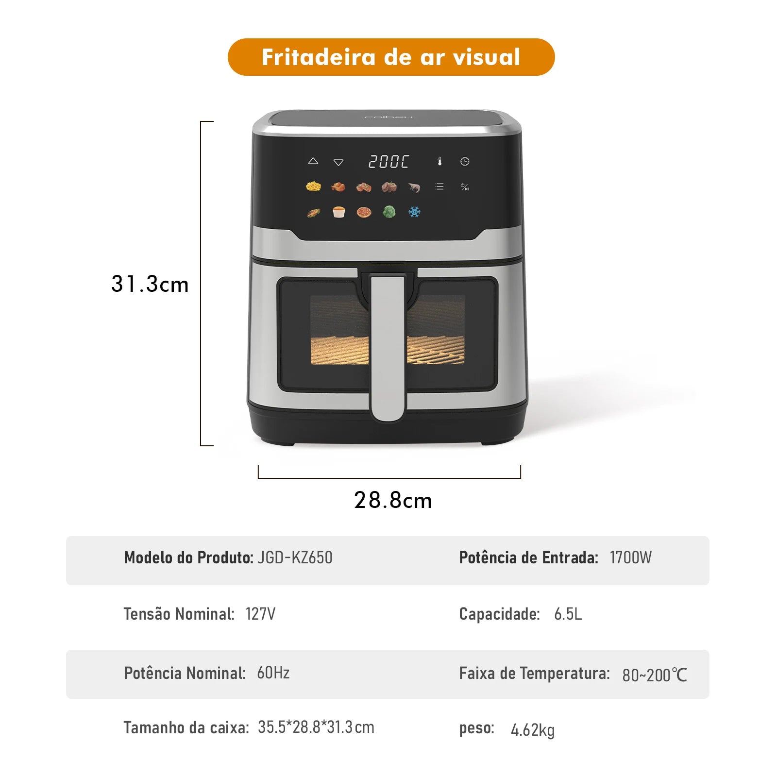 Air Fryer Air Fryer Electric Oil Free Air Fryer Viewing Window Constant Heating 127V 6.5L