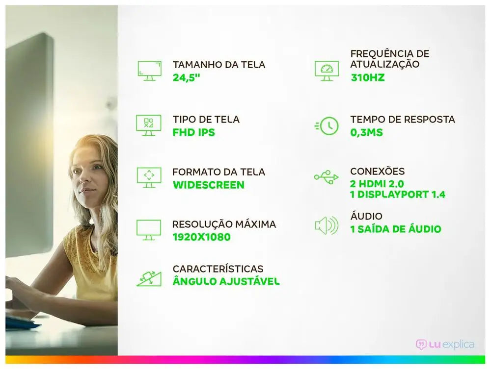 AOC Gaming CS25G Gamer Monitor 24,5 Full HD 310Hz 0,3Ms HDMI CS25G/78 - Bivolt