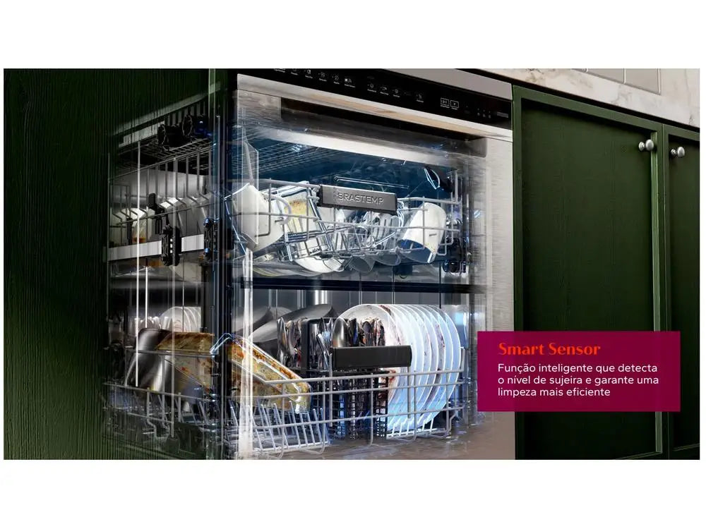 Home Appliance Functions: Smart Sensor Function: Intelligent function that detects the level of dirt in the dishes, accurately calculating the time and amount of water to ensure a more efficient cleaning. It combines sustainability and practicality with technology that saves the