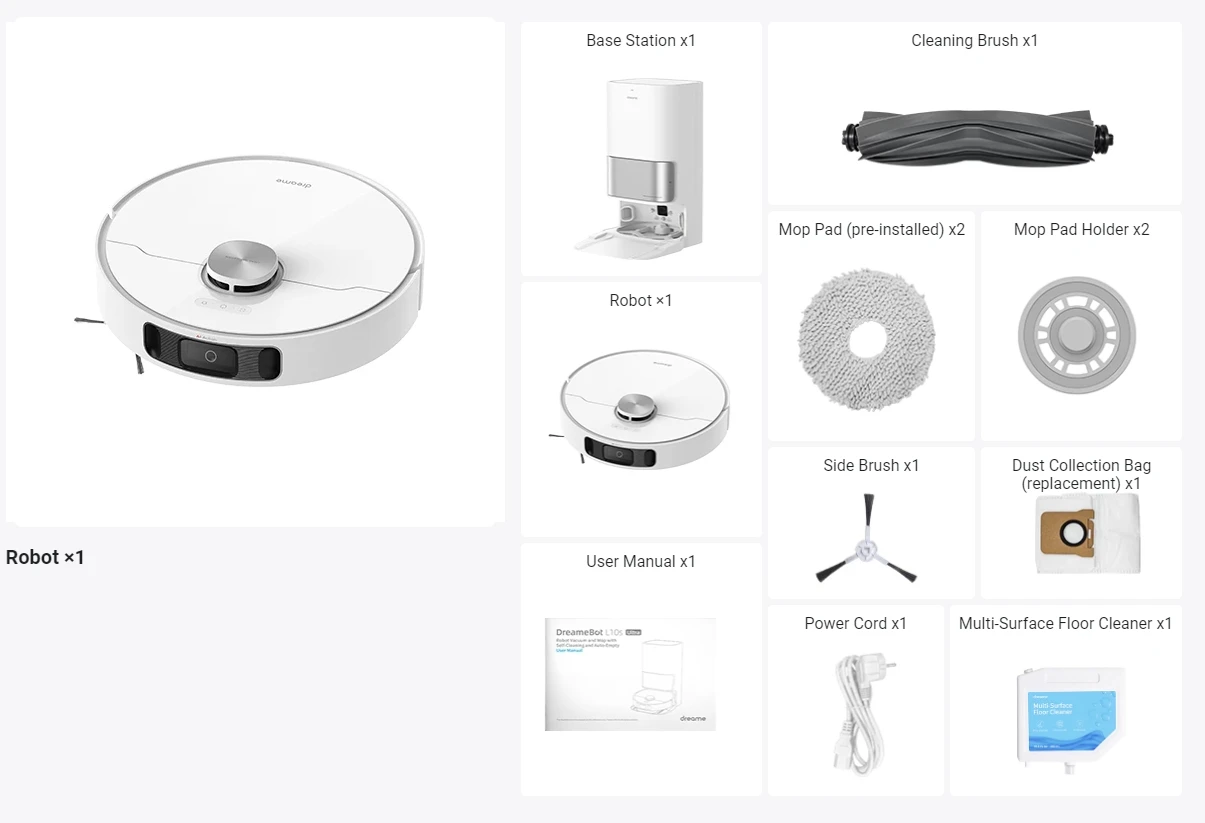 dreame L10s Ultra Robot Vacuum, Auto Mop Cleaning and Drying, Self-Refilling and Self-Emptying, 5300Pa, AI Navigation,Alexa