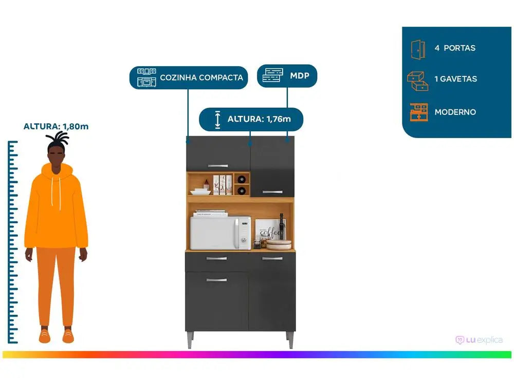 Discover the perfect solution for those looking for a compact kitchen kit, versatile and with amazing internal space. The Modulated Kitchen Aramóveis Malva was designed to store all your utensils with organization and practicality, optimizing every centimeter of your environment. Imagine the ease of having 4 doors and 1 drawer at your disposal, plus 4 smart niches to display your favorite items or keep everything at hand. Experience the lightness and durability of telescopic slides in the drawer and metal hinges on doors, ensuring smooth handling and precise closure for much longer. The modern design in the combination of Woody and Gray adds a touch of elegance and contemporaneity to your space. Built in MDP with coating in UV paint and finishing in UV varnish, the Malva kitchen offers resistance and beauty for your day to day. More than a compact kitchen, it is the smart answer for those who value organization and practicality in an optimized space.