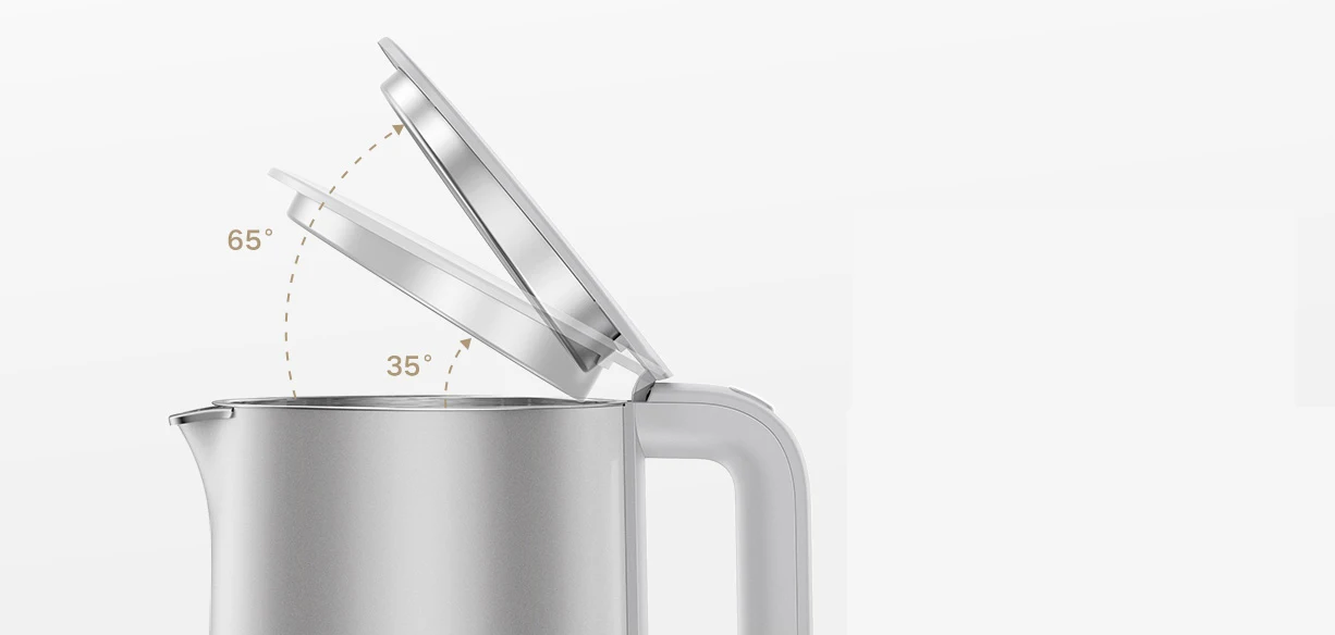 The lid is opened using a two-stage damping design. The lid can open to a smaller degree, so that the hot water beads gathered on the lid will not splash out, preventing burning.