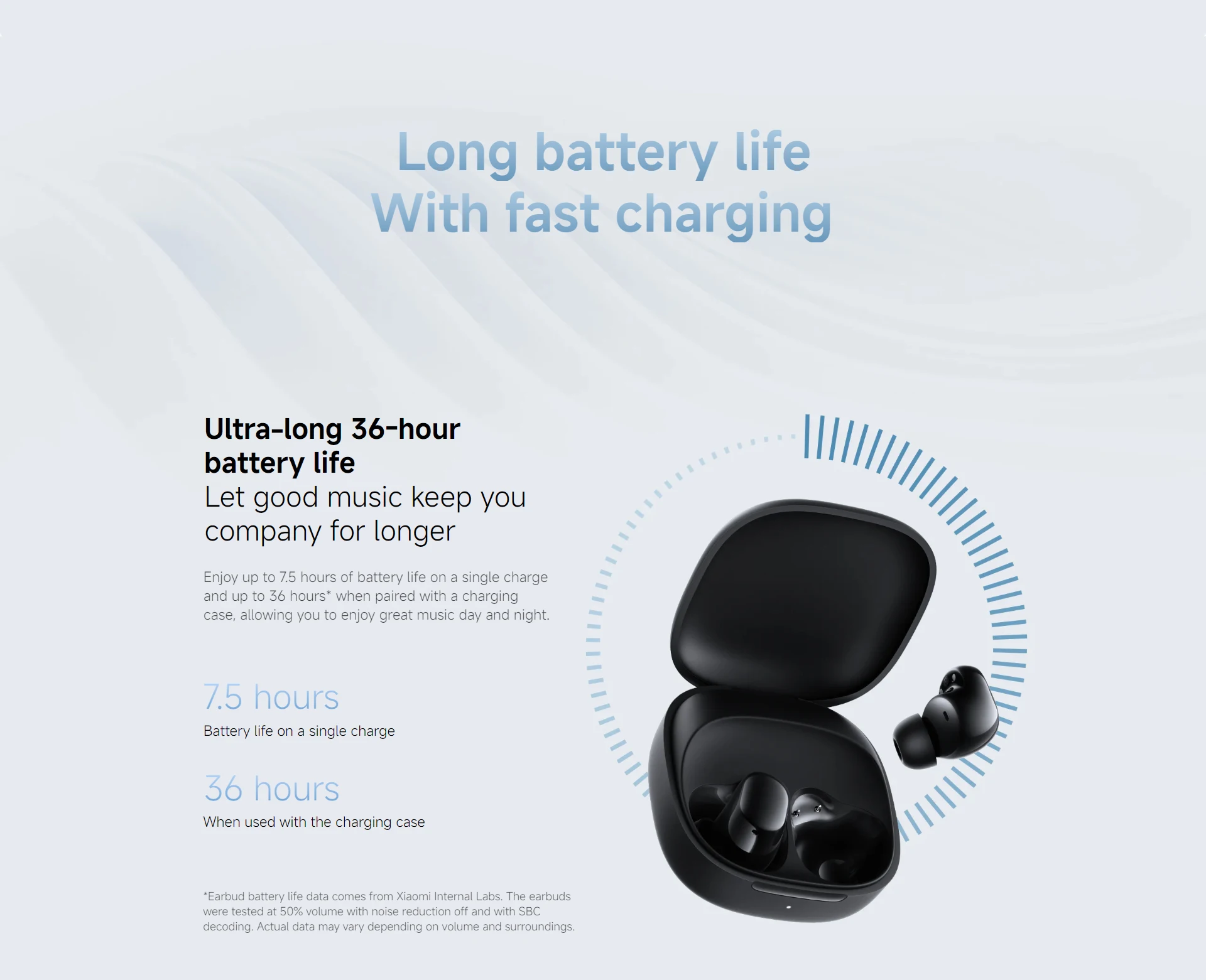 Enjoy up to 7.5 hours of battery life on a single charge and up to 36 hours* when paired with a charging case, allowing you to enjoy great music day and night.