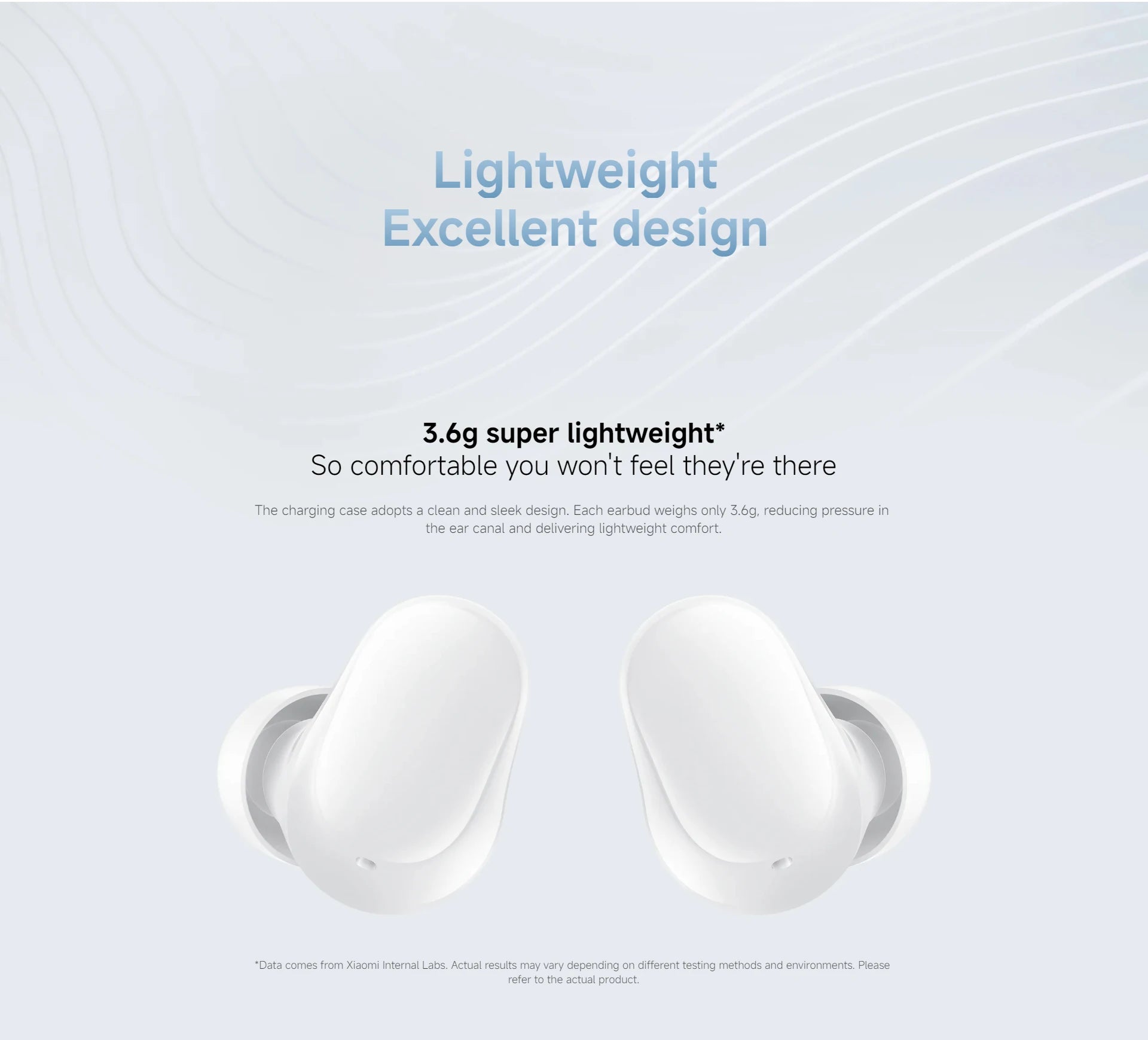 The charging case adopts a clean and sleek design. Each earbud weighs only 3.6g, reducing pressure in the ear canal and delivering lightweight comfort.